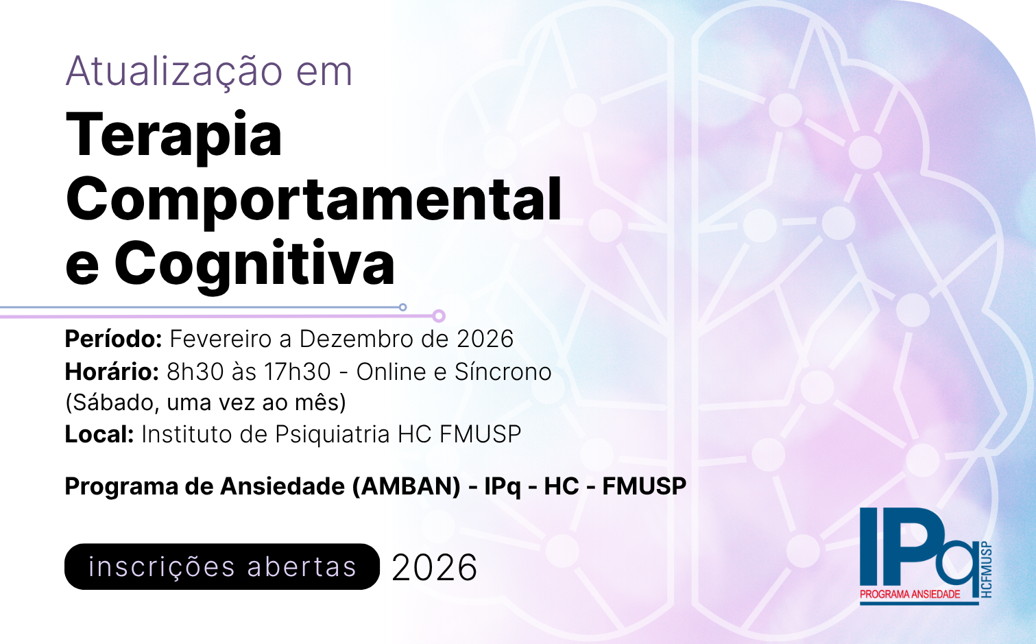 1. Atualização em Terapia Comportamental e Cognitiva – Instituto de Psiquiatria – IPq - […] Inscrições: 05/11/2025 até 10/02/2026, aulas síncronas: transmissão via zoom. Será realizado no IPq, de fevereiro a dezembro de 2026,…